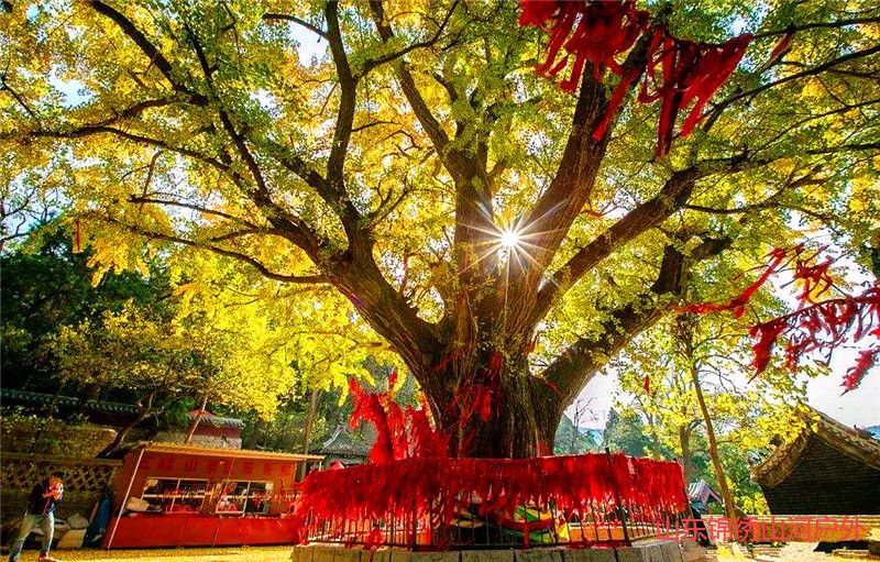 五峰山景区内的2600多年的古银树王、山东第二古银杏树。