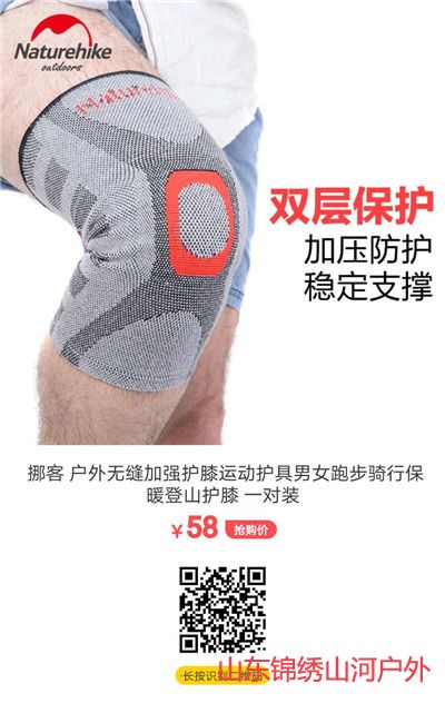 挪客品牌-户外无缝加强运动护膝、质量保障、价格实惠。山东锦绣山河户外俱乐部推荐。
