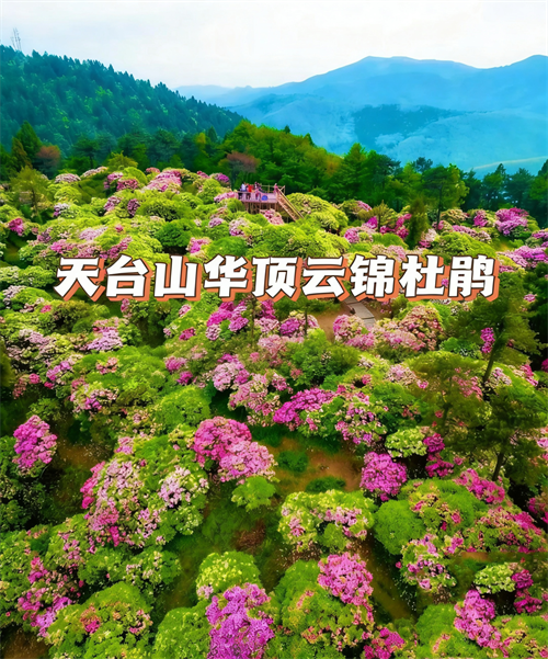 浙江台州天台山主峰华顶山的千年云锦杜鹃林,每年4月底至5月中旬,千亩古杜鹃竞相绽放,形成“千米高山、千亩花海、千年杜鹃、千花杜鹃”的震撼景观。