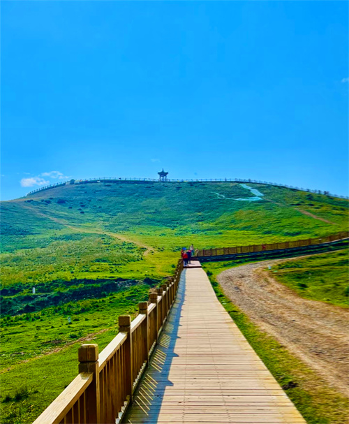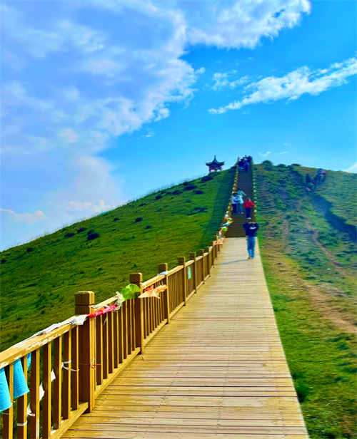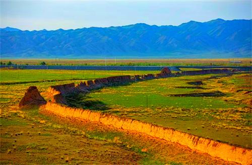 第四日:山丹汉明长城-山丹军马场-鸾鸟湖。我们驱车来到位于甘肃省山丹县的【汉明长城遗址】。绵延近200公里的汉明长城虽修建于不同的年代,却同样身负守护后代和平的责任。完全不同的建筑方式,却有着同样的长度和走向,汉长城在北侧,明长城在其里,两者平行延伸,犹如蜿蜒在茫茫戈壁中的巨龙,今天我们将沿着历史的痕迹,用脚步丈量昔日的金戈铁马。由骠骑将军霍去病创立的【山丹军马场】,是世界上历史最悠久的皇家马场之一。连绵不断的绿色草原上,偶有牛羊略过,它们时而沿着湖泊饮水,时而三两成群嬉闹。你可以自由骑马,策马扬鞭时的微风是自由的味道。抬眼望去,奇花异卉和耳边清澈的水声相和,构成了大自然的完美画卷。在这里,风景秀丽的【鸾鸟湖】极富神话色彩,据说这里的湖水具有神秘力量,会给人带来好运,因此当地居民经常在湖边献上贡品,以求神灵保护。适时离开,驱车前往民乐县休息。