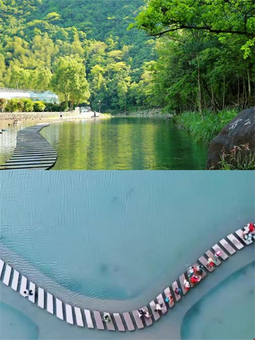 小众网红-漫步轻徒-新昌盐帮十八渡是浙江省绍兴市新昌县的一条免费开放的古道景区,以18座碇步桥和山水风光闻名,曾是古代私盐贩子的秘密通道,如今成为热门徒步玩水胜地。