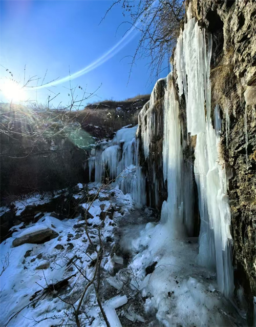 保定涞水北太行深处的原生态冰瀑群奇观、还有石林的震撼风景是徒步冬日的网红之地。